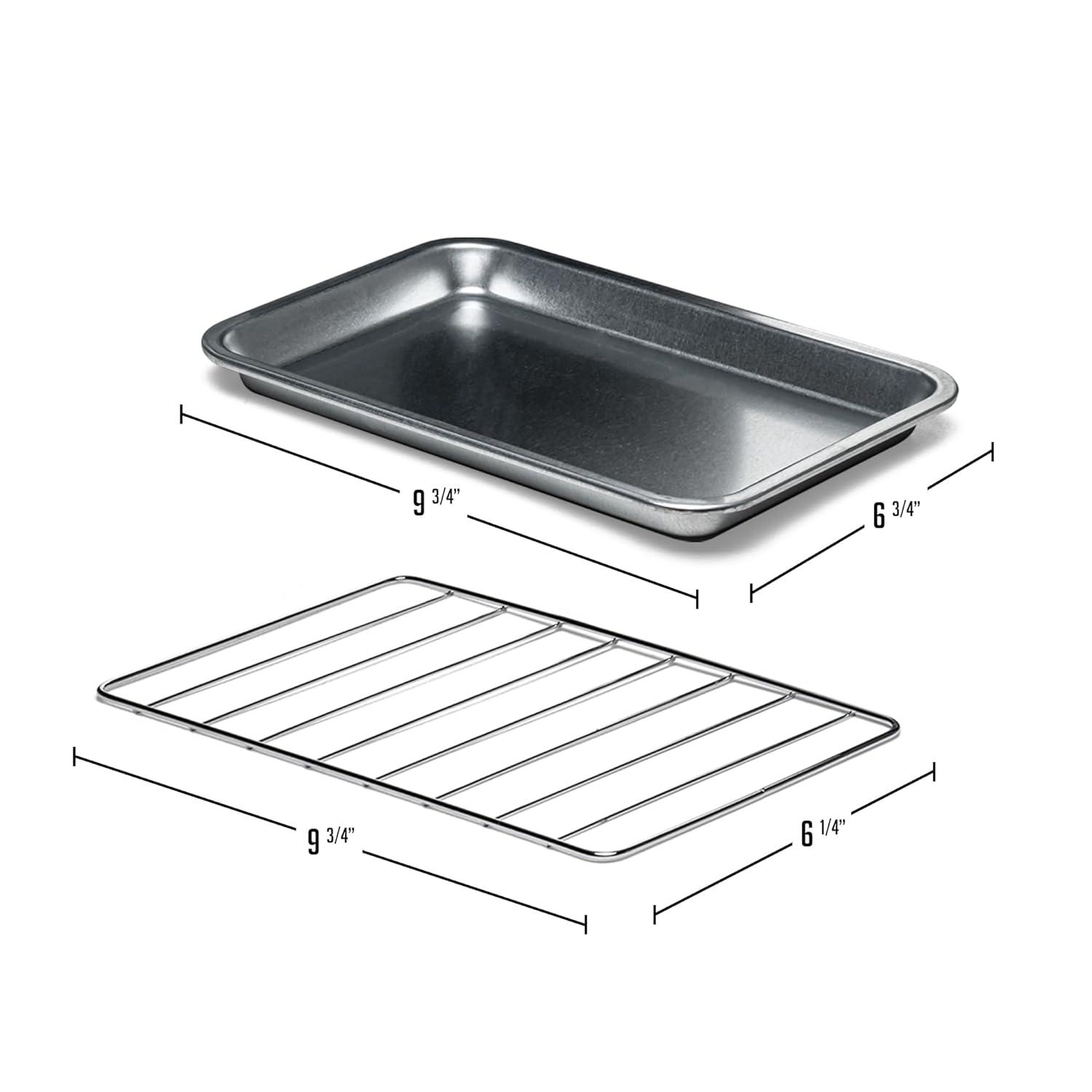 VERSATILE PERFORMANCE – The compact design fits perfectly in smaller kitchens, dorms or RVs without sacrificing power. Equipped to handle a wide range of foods, it comes with an easy-to-clean baking pan and a wire rack that smoothly slides in and out of two adjustable rack positions, giving you the flexibility to cook everything from snacks to full meals.