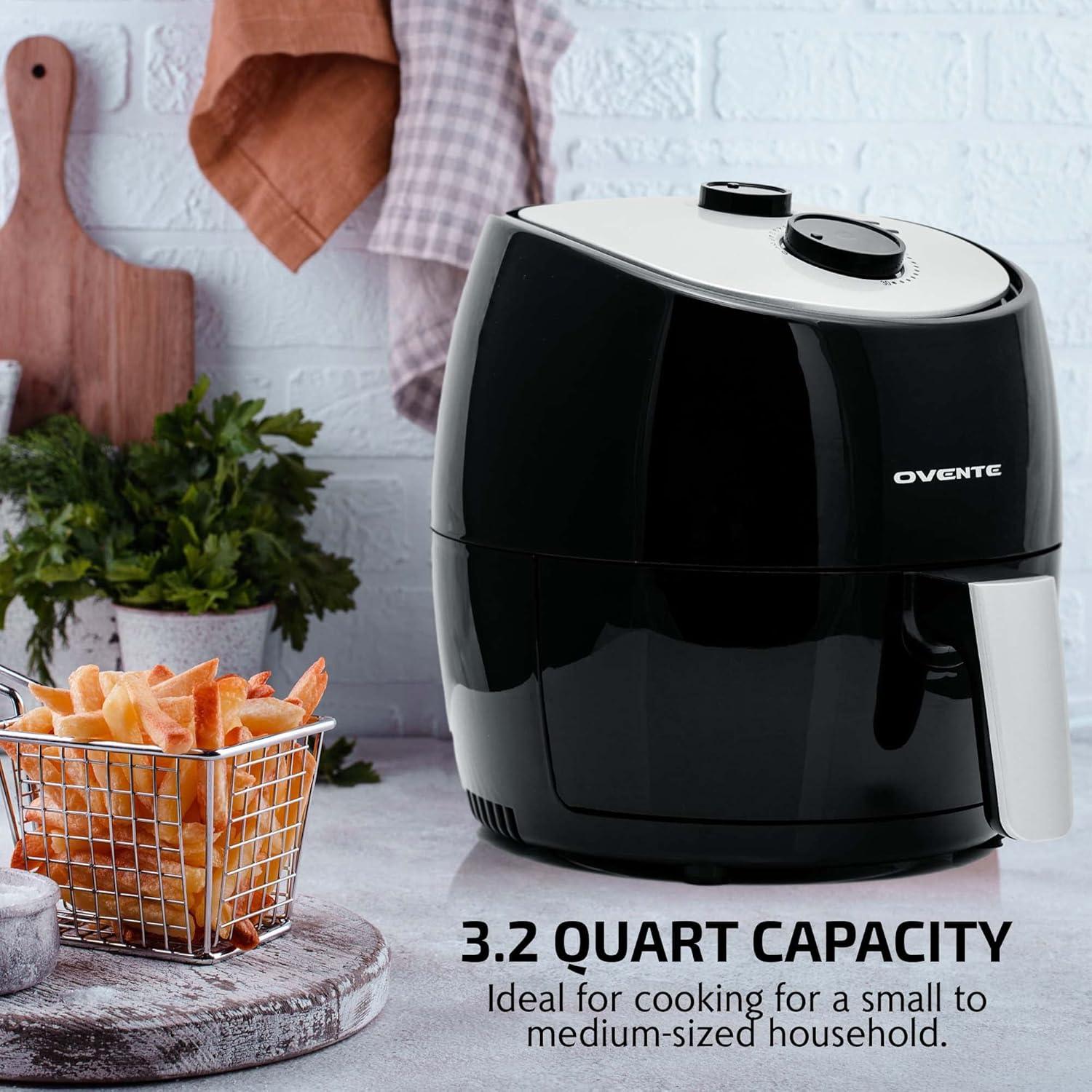 OVENTE Compact Air Fryer for Healthy and Oilless Cooking, 3.2 Qt Nonstick & Dishwasher Safe Basket, 1300W Electric Cooker w/ Adjustable Temperature Control, 30Min Timer & Auto Shutoff, Black FAM11320B