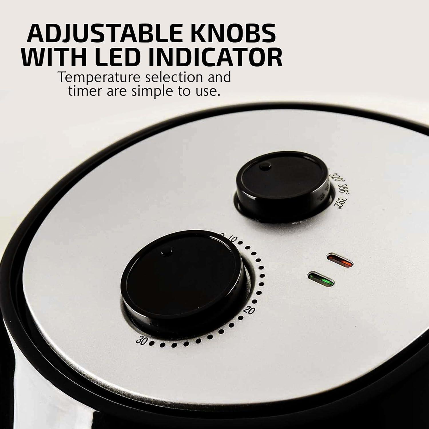 EASY TO USE – Has 3.2 quart capacity good for 1 to 2 people with LED indicator lights and a rotary temperature control knob that ranges from 176 to 392°F. Equipped with an auto shut-off feature for added safety. Plus, it has a non-stick removable basket that is dishwasher safe, cool-touch handle and a timer that can be set up to 30 minutes.